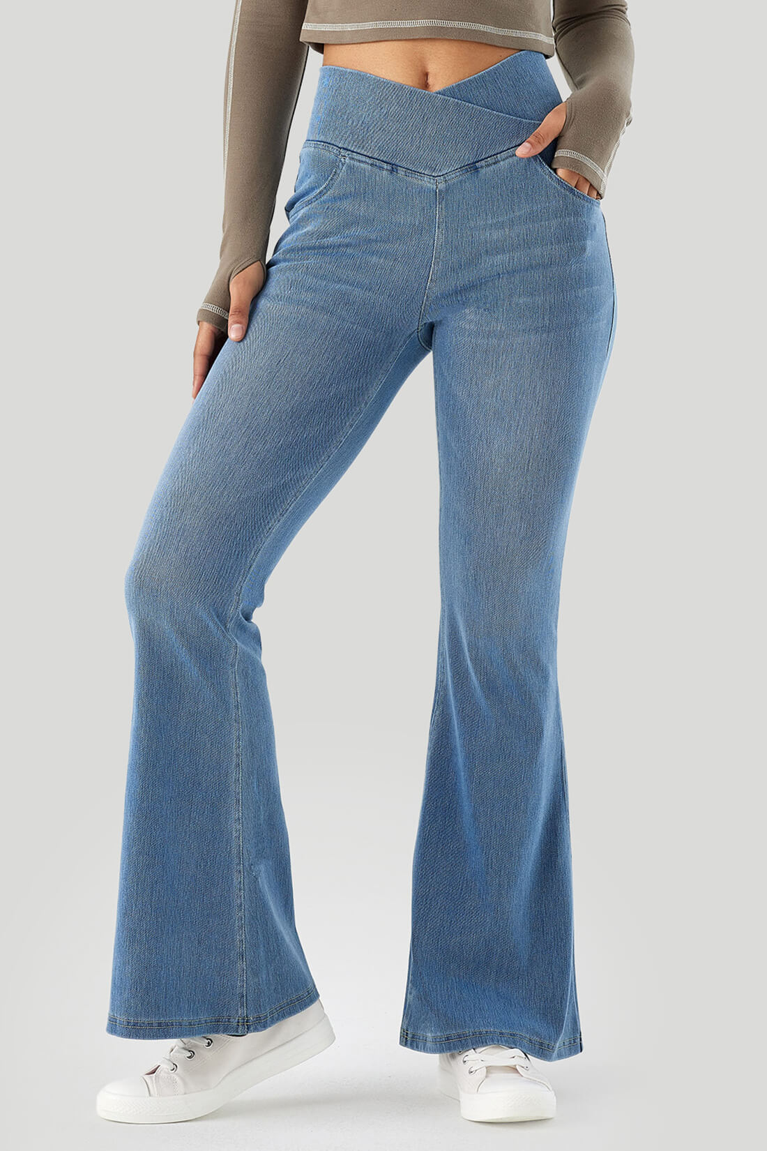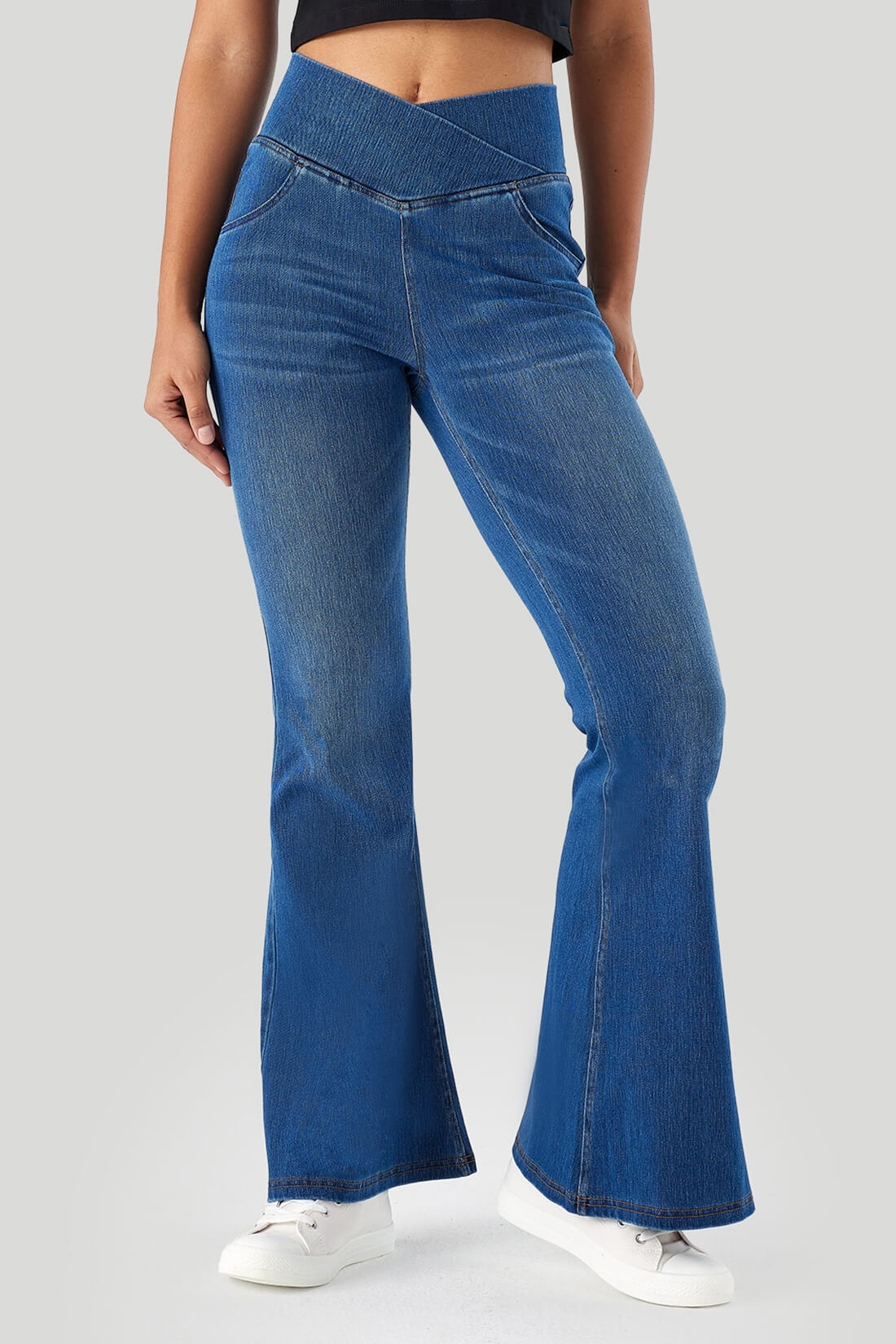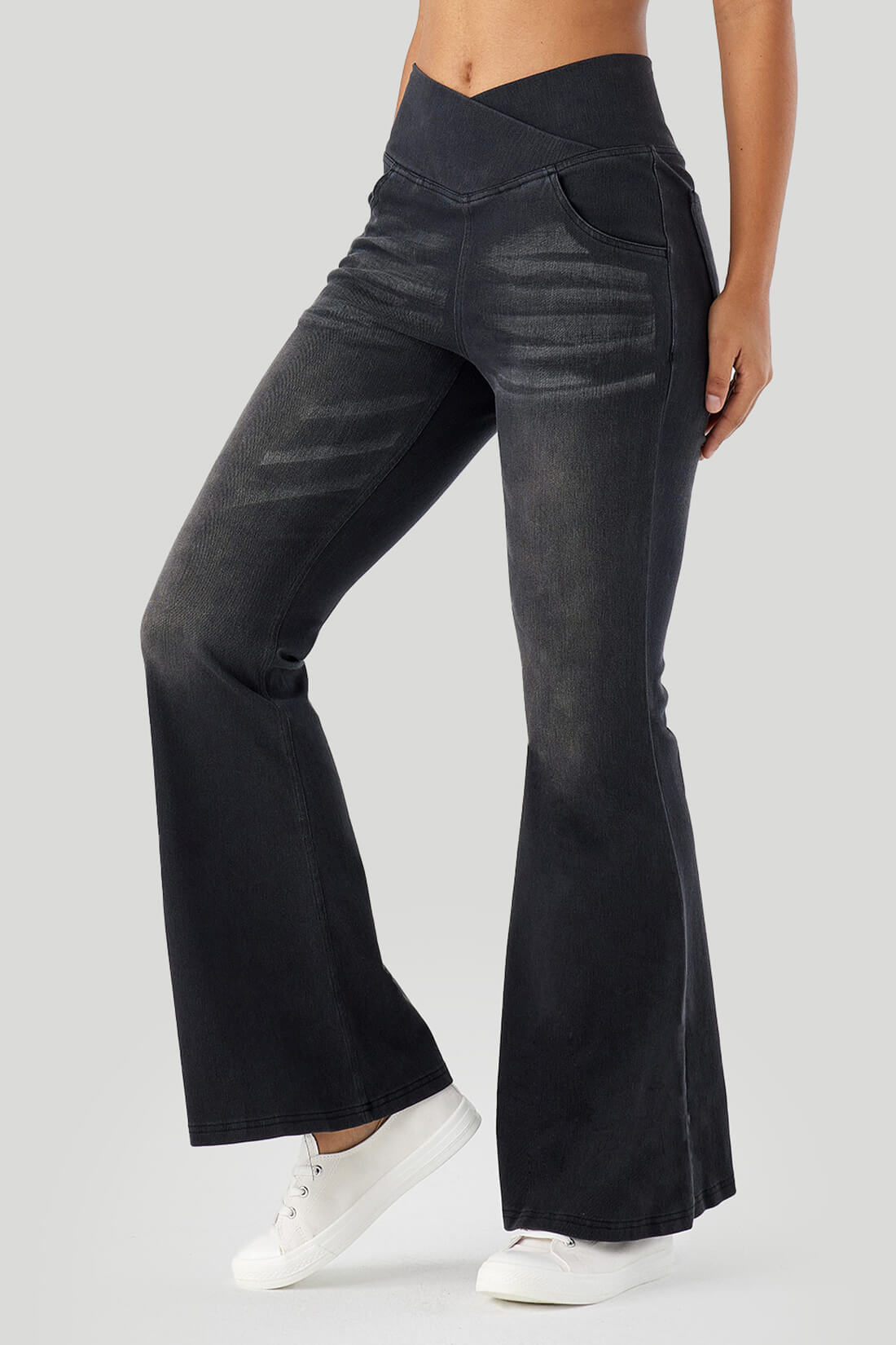 - Crossover waist design to slim your waist