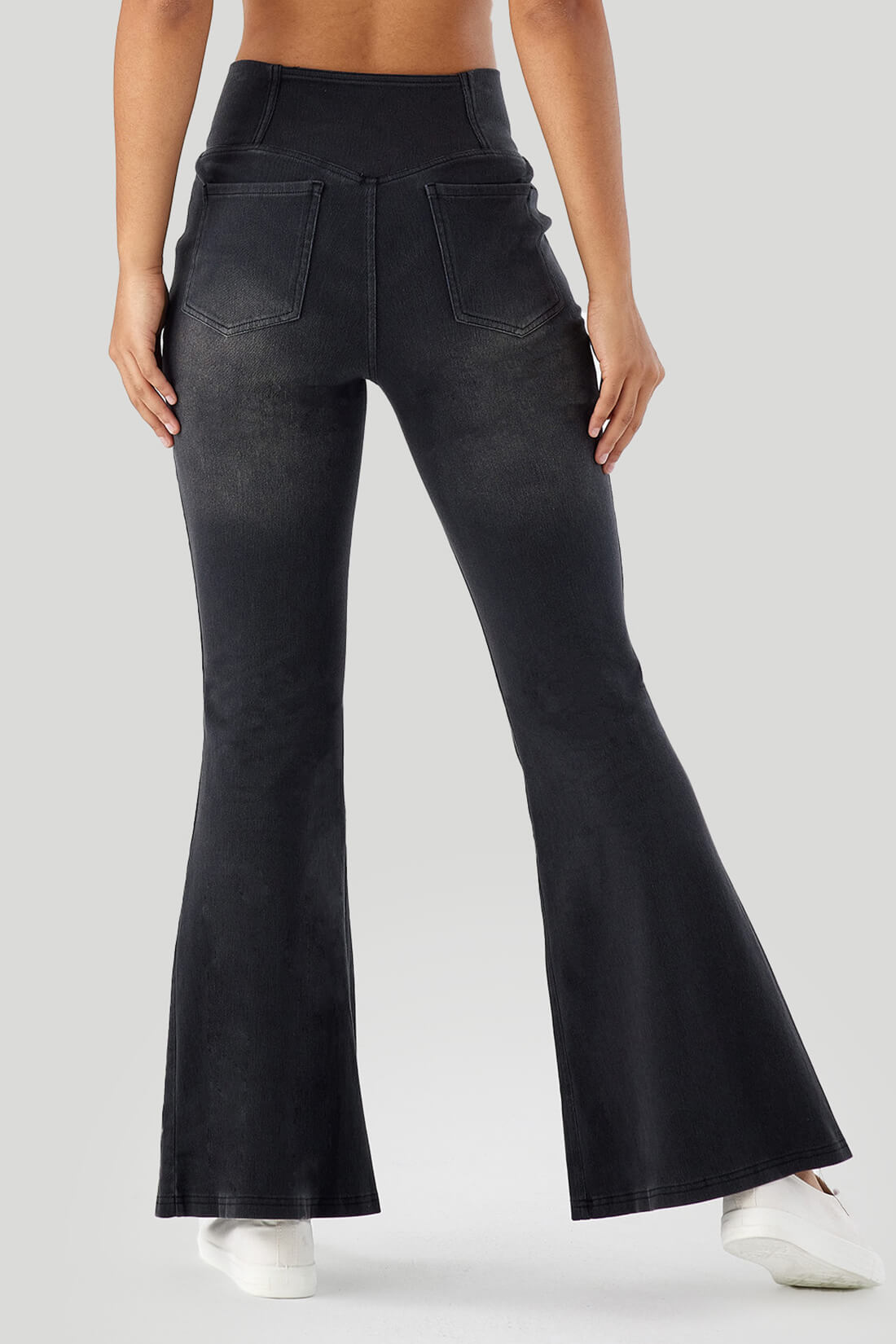- Flared pants elongate the legs